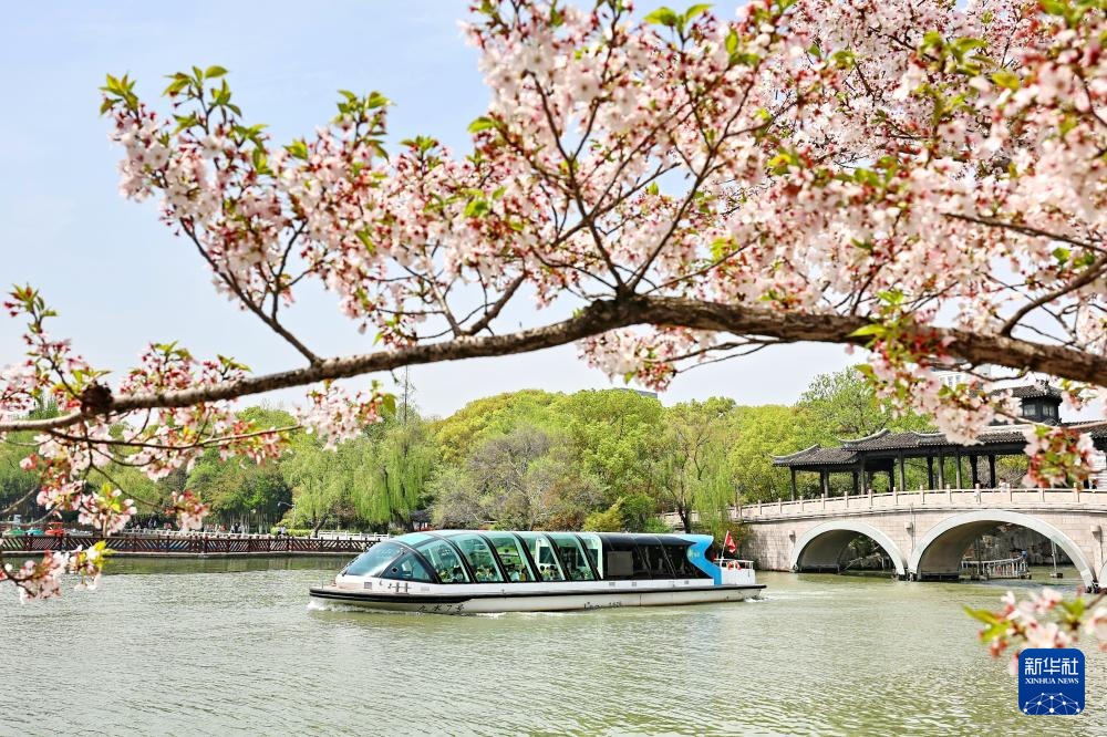 4月5日,游客在江苏苏州虎丘湿地公园游玩。