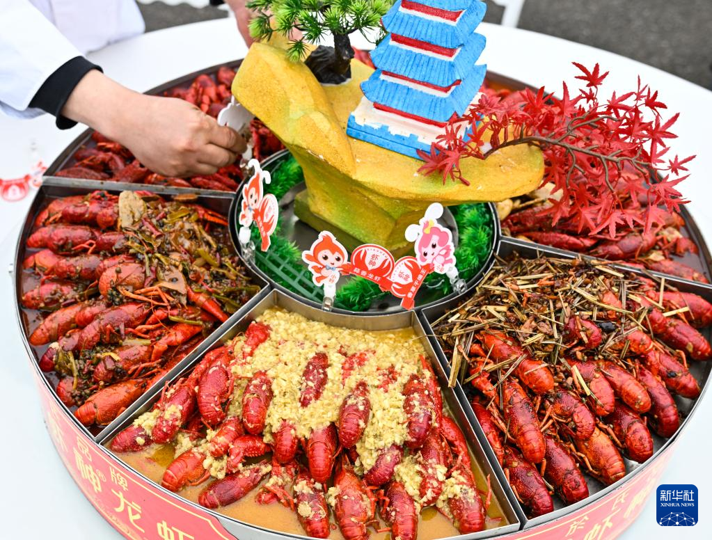 4月3日在龙虾开捕仪式活动现场拍摄的小龙虾菜品。