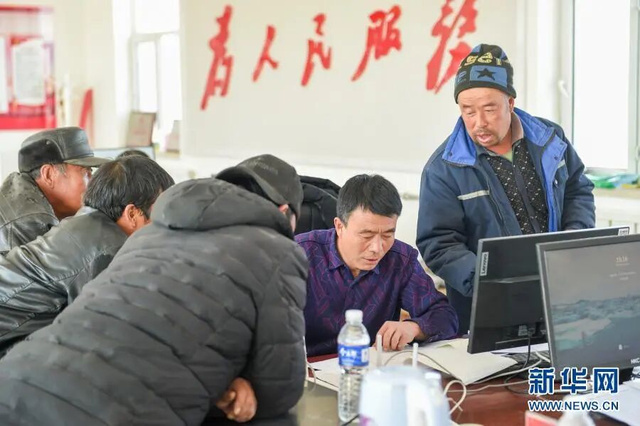 脱贫户闫峰(右二)在村委会与村民交流。 图源:新华网