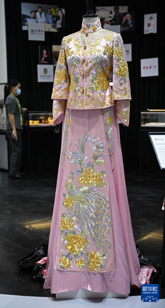 4月11日在第六届消博会主宾省——上海展台拍摄的旗袍。