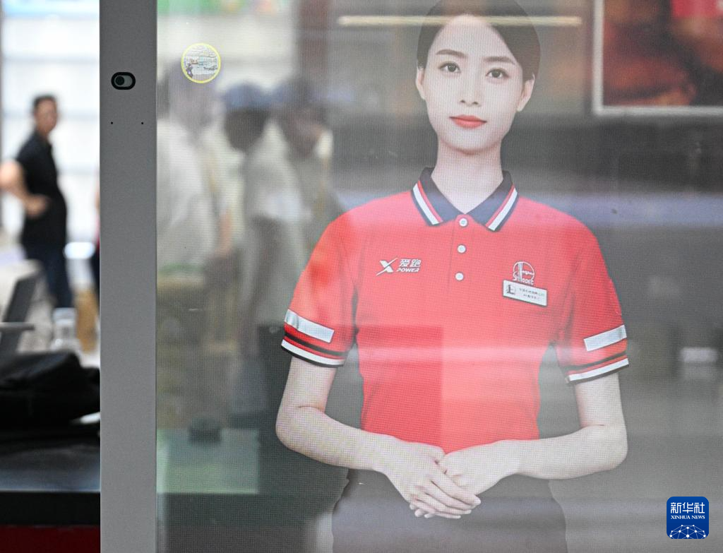 4月11日在第六届消博会主会场拍摄的中国石化数字员工。