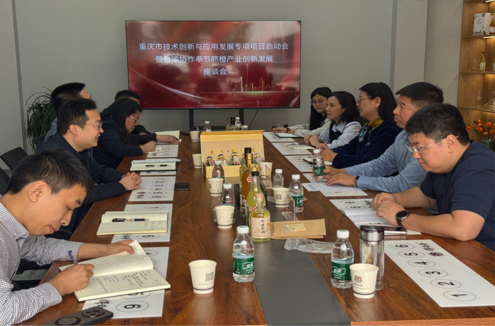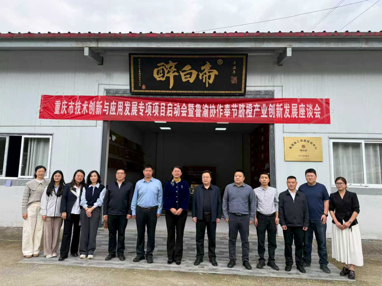 近日,重庆市技术创新与应用发展专项项目启动暨鲁渝协作奉节脐橙产业创新发展座谈会在奉节县安坪镇夔凤酒业有限公司召开。来自山东省葡萄研究院的科研团队将助力重庆本土企业集中攻关脐橙精油提取、细菌纤维素制备、功能饮料开发等领域开展联合攻关。