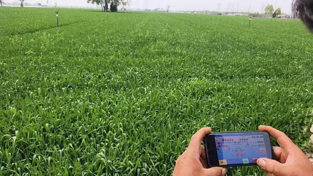 刘现印说,他引进了智能灌溉物联网技术,埋在地下的传感器能够实时监测土壤墒情,并将数据同步回传至云端。基于这些数据,云端智能平台能根据小麦不同生长阶段的需水规律,自动且精准调控灌溉水量和时间。“现在单次浇水就能节省近千元成本。”他说。