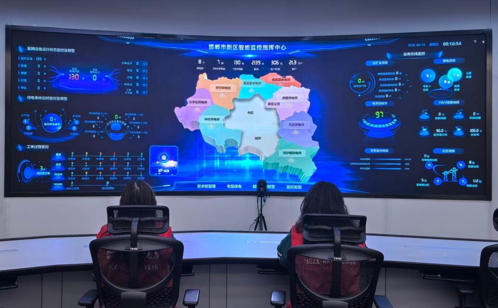 4月15日,国网邯郸市新区供电分公司依托电力大数据平台,研判涉农线路运行情况。新华社记者 赵鸿宇 摄