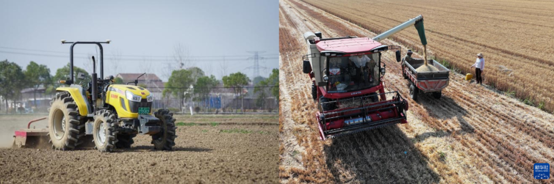 5-图为旋耕机和联合收割机。(图片来源:新华社)