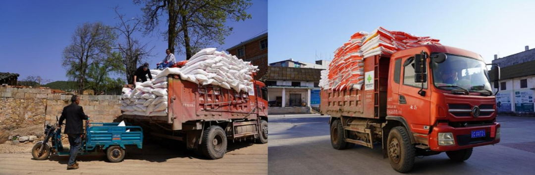 2.农资运输——载货超限,违规混装。种子、化肥、农药、地膜等农资运输进入高峰,运输车辆多为老旧货车或改装三轮车,超载、货物固定不牢等问题普遍存在,如图8。农村道路弯多坡陡,制动距离延长,转弯时侧翻风险较大。部分农户将汽油、柴油与化肥混装,碰撞泄漏遇明火可能引发爆燃。