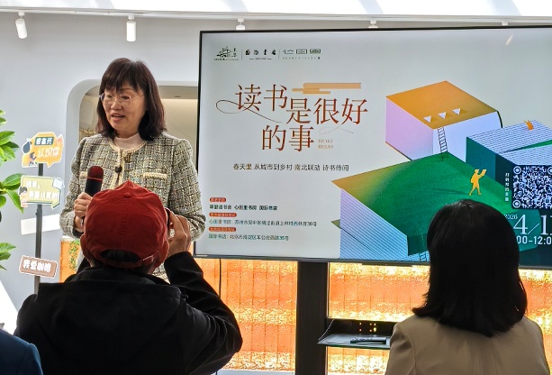 丰富阅读场景,举办与阅读相关的活动,是推进乡村阅读的另一个好方法。作为苏州会场的心田里书房,既是一家乡村书店,也是村里的图书馆、会客厅,每年要举办一百多场和阅读有关的活动,现在,这里成为周边村民最喜欢来的地方, “不仅是这里的村民,周边甚至镇上的老师们,都常到书店来。” 书店联合创始人许涛介绍说。书店所在的苏州上林村党委书记张林峰说,“书店开在乡村里,对乡风文明建设,也有很好的促进和推动作用。”
