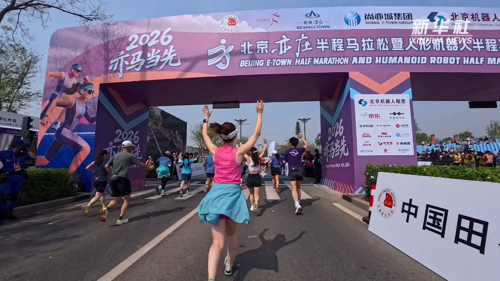 4月19日,2026北京亦庄半程马拉松暨人形机器人半程马拉松鸣枪开跑。在这条充满科创活力的赛道上,新华社记者刘潇再度参赛,与机器人选手并肩竞速,在奔跑中见证科技飞速发展的脚步。