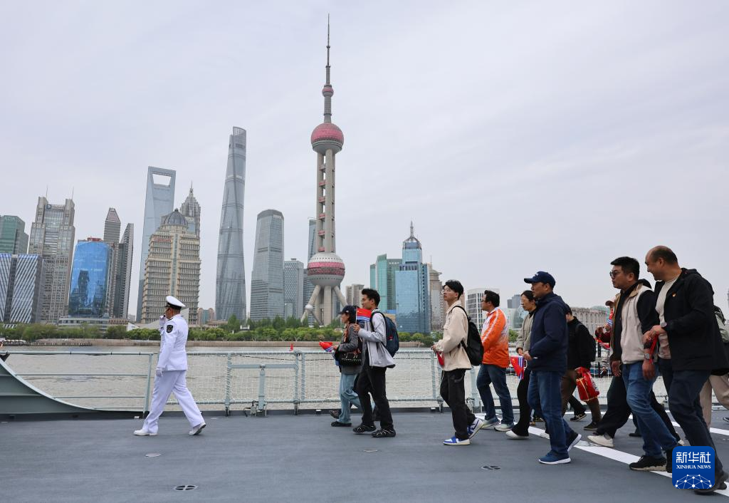 4月21日,以“上海·海上”为主题的庆祝人民海军成立77周年舰艇开放活动,在上海港国际客运中心码头举行。海军阜阳舰、海军千岛湖舰悬挂满旗,迎接各界群众登舰参观。
