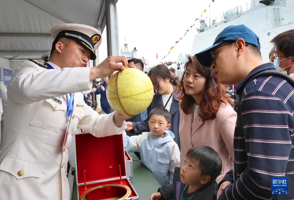 4月21日,参观者在舰艇开放活动上参观。