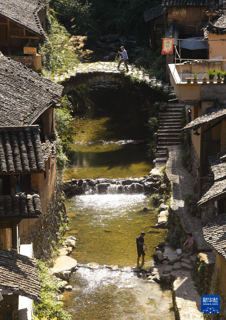 在浙江省丽水市松阳县松庄村,村民在溪涧中浣洗(2024年7月18日摄)。新华社记者 翁忻旸 摄