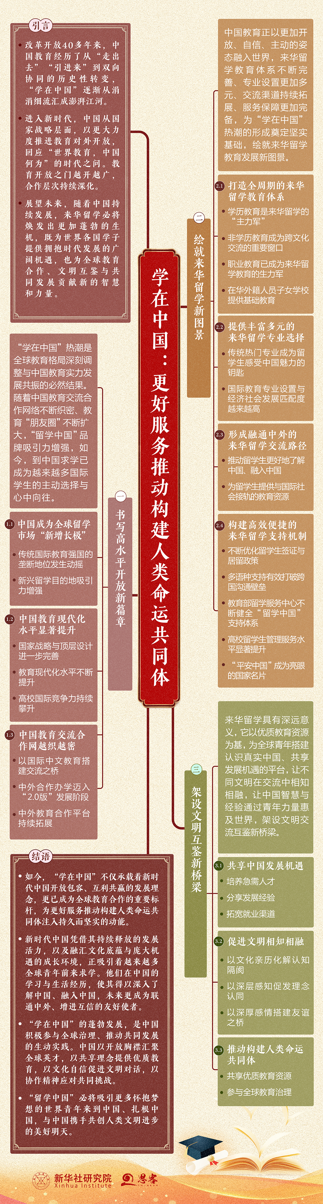 思维导图来了!⼀图了解《学在中国:更好服务推动构建⼈类命运共同体》智库报告