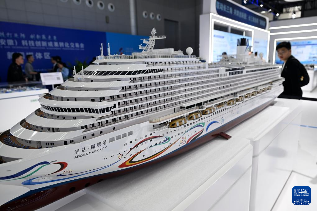 4月26日,观众在第四届中国(安徽)科技创新成果转化交易会上观看“爱达·魔都号”邮轮模型。