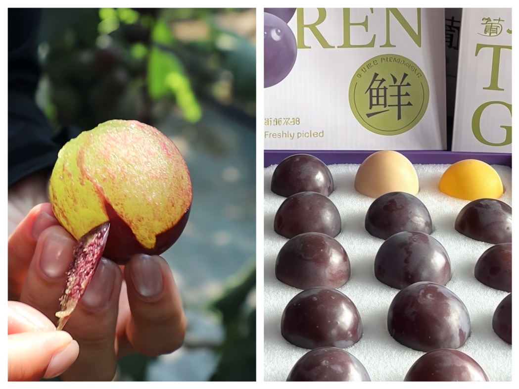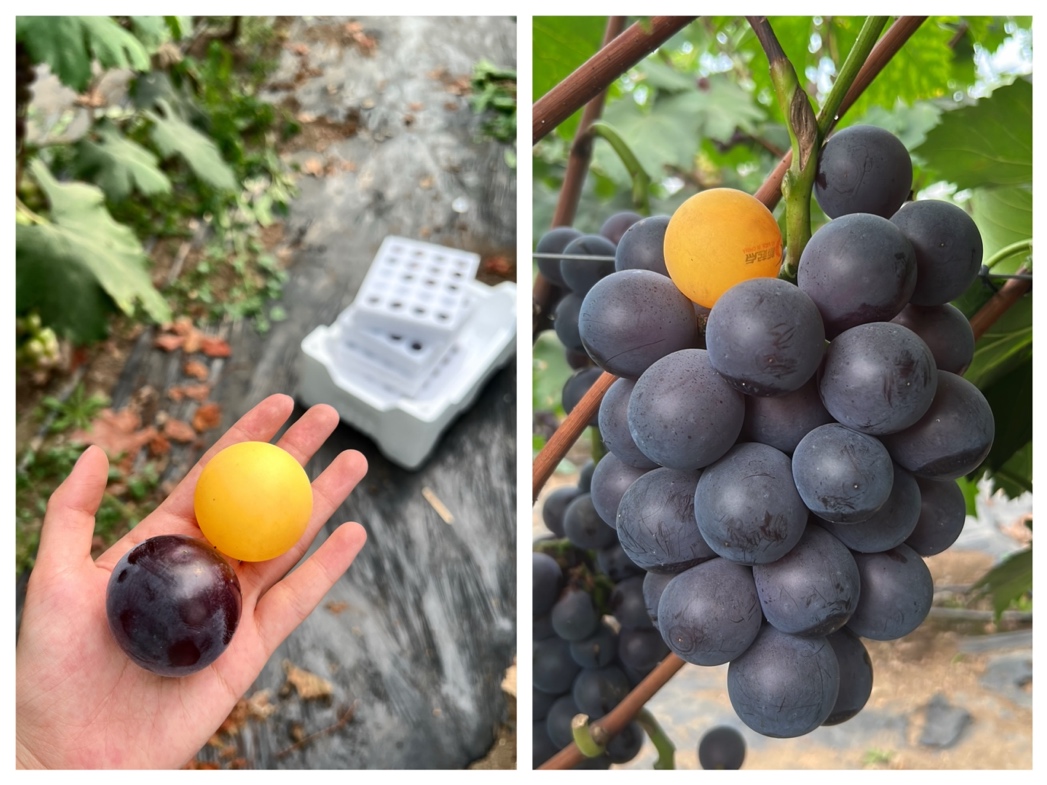 藤稔葡萄,也叫“乒乓球”葡萄,主要因其果粒大如“乒乓球”而得名,堪称葡萄界的“巨无霸”。这种葡萄不仅果粒硕大,而且皮薄肉厚,汁水尤其充足。