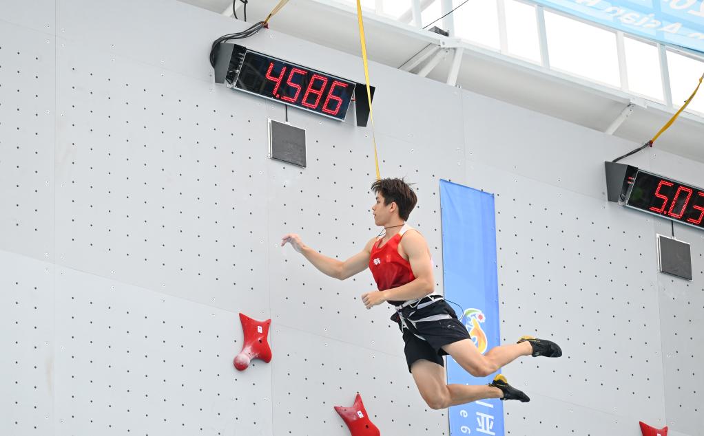 晚间的淘汰赛中,赵一程发挥稳定,前三轮比赛分别爬出4秒69、4秒66和4秒62,顺利闯入决赛。在金牌赛对阵印度尼西亚选手希尔米时,对手因抢跑被判犯规,赵一程直接获得冠军。