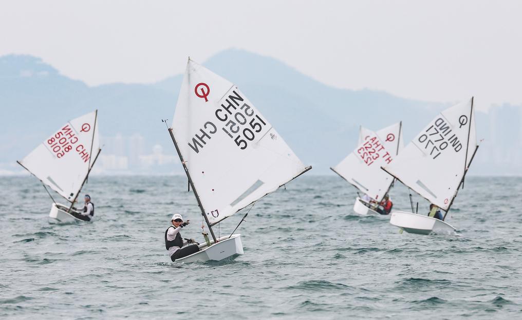 帆船项目迎来收官日,中国队摘下两金。OP帆船方面,14岁的程文俞在女子组系列赛中持续领跑,夺得冠军。新加坡选手陈安雅摘得银牌,泰国选手帕里亚蓬·占塔拉翁获得铜牌。另一位中国队小将、13岁的倪艺珈位列第四。