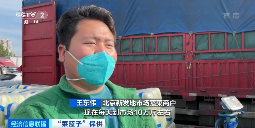 北京新发地市场蔬菜商户 王东伟:今年产地大白菜丰收,现在每天到市场10万斤左右,价格为一斤0.4元到0.5元左右,比上周下降10%。