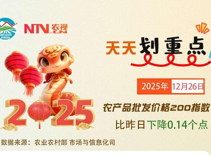 12月26日:“农产品批发价格200指数”比昨天下降0.14个点