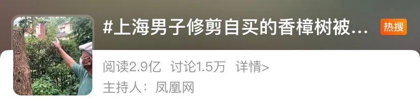 因嫌树木遮挡阳光,上海李先生修剪自己种的香樟树没想到却被罚款14.42万元,这件事最近冲上了热搜引起网友热议。
