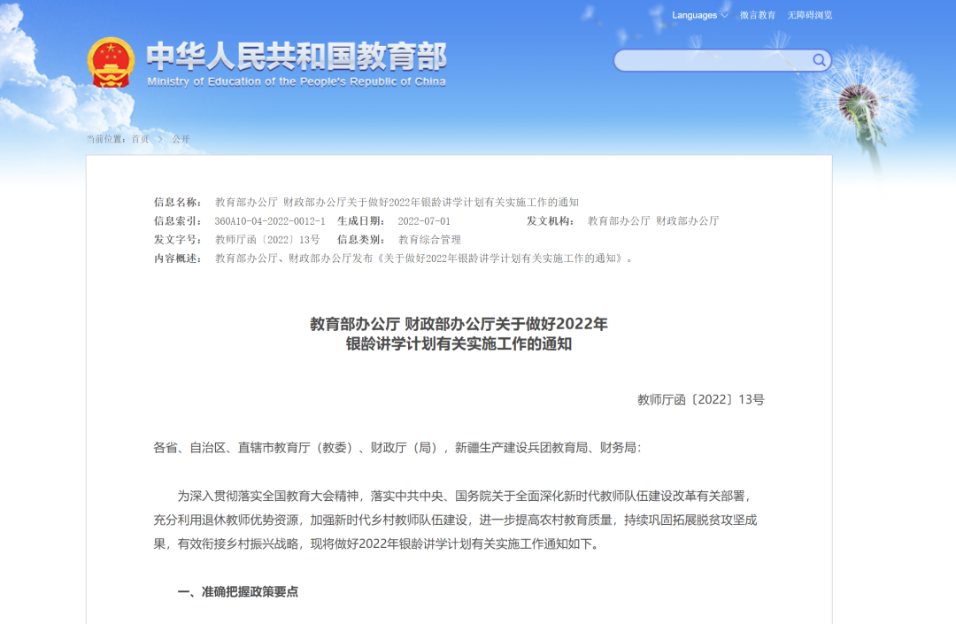 教育部办公厅 财政部办公厅关于做好2022年银龄讲学计划有关实施工作的通知