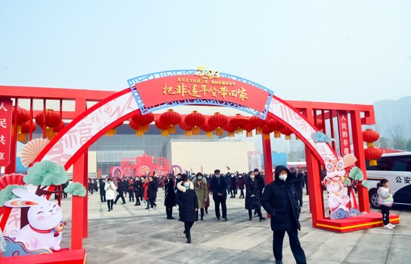 春节期间,市博物院广场外,2023年“文化进万家 视频直播家乡年—把非遗年货带回家”系列活动火爆进行中。“这个展销会办得很闹热,活动力度也大,用消费券买东西划算得很。”市民王女士说道。