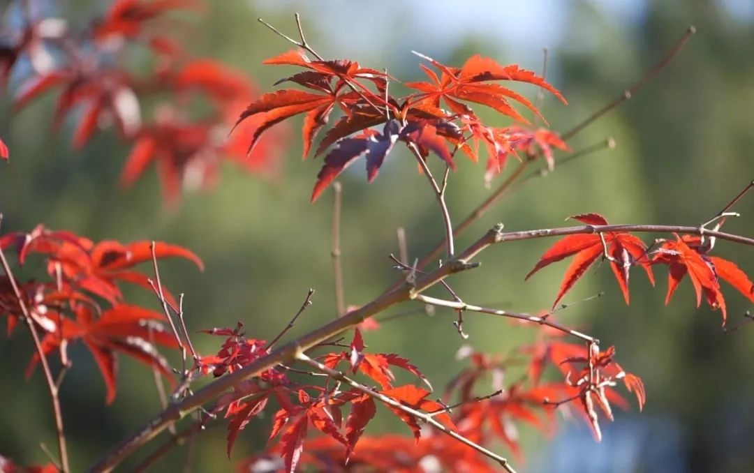 红枫叶正在由北向南